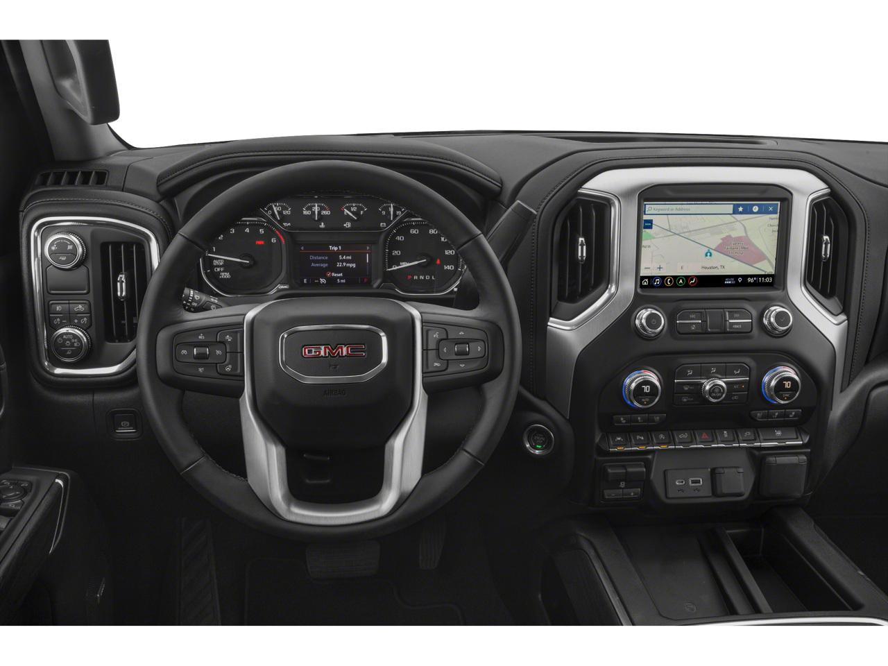Recent Arrival! Clean CARFAX. Doggett Ford North Houston is proud to present you with another True Market Priced Vehicle. This 2019 GMC Sierra 1500 SLT is loaded with the following Factory Options: Driver Alert Package I (Front Frame-Mounted Black Recovery Hooks, Lane Change Alert w/Side Blind Zone Alert, Perimeter Lighting, Rear Cross Traffic Alert, and Ultrasonic Front & Rear Park Assist), Driver Alert Package II (Following Distance Indicator, Forward Collision Alert, Front Pedestrian Braking, IntelliBeam Automatic High Beam On/Off, Lane Keep Assist w/Lane Departure Warning, Low Speed Forward Automatic Braking, and Safety Alert Seat), Preferred Equipment Group 4SA (12-Volt Rear Auxiliary Power Outlet, 120-Volt Bed Mounted Power Outlet, 120-Volt Instrument Panel Power Outlet, 170 Amp Alternator, Auxiliary External Transmission Oil Cooler, Chrome Grille, Color-Keyed Carpeting Floor Covering, Compass, Deep-Tinted Glass, Electric Rear-Window Defogger, Electrical Lock Control Steering Column, GMC 4G LTE, GMC Connected Access, HD Radio, Heated Driver & Front Passenger Seating, Heavy-Duty Rear Locking Differential, Hitch Guidance, Hitch Guidance w/Hitch View, In-Vehicle Trailering App, Integrated Trailer Brake Controller, Keyless Open & Start, LED Cargo Area Lighting, Manual Tilt-Wheel & Telescoping Steering Column, OnStar & GMC Connected Services Capable, Power Door Locks, Power Front Passenger Windows w/Express Up/Down, Power Front Windows w/Driver Express Up/Down, Power Rear Windows w/Express Down, Rear Dual USB Charging-Only Ports, Rear Wheelhouse Liners, Remote Vehicle Starter System, Steering Wheel Audio Controls, and Theft Deterrent System (Unauthorized Entry)), SLT Convenience Package (2 USB Ports, 2 USB Ports (1st Row), Floor Mounted Console, Front Bucket Seats, Heated 2nd Row Outboard Seats, Power Sliding Rear Window w/Rear Defogger, Universal Home Remote, and Ventilated Driver & Front Passenger Seats), SLT Preferred Package (Premium Bose 7-Speaker Sound System, Radio: Premium GMC Infotainment Sys w/Navigation, SiriusXM Radio, and Wireless Charging), SLT Premium Plus Package (Chrome Assist Steps, Spray-On Pickup Bed Liner w/GMC Logo, and Trailer Tire Pressure Monitor System), Trailer Camera Package, Trailering Package, 10-Way Power Driver Seat Adjuster w/Lumbar, 10-Way Power Passenger Seat Adjuster w/Lumbar, 20 x 9 Polished Aluminum Wheels, 3.23 Rear Axle Ratio, 4-Wheel Disc Brakes, 6 Speakers, 6-Speaker Audio System Feature, ABS brakes, Air Conditioning, All-Weather Floor Liner (LPO), Alloy wheels, AM/FM radio: SiriusXM, Apple CarPlay/Android Auto, Auto-dimming door mirrors, Auto-dimming Rear-View mirror, Automatic temperature control, Brake assist, Bumpers: chrome, Delay-off headlights, Driver door bin, Driver Memory, Driver vanity mirror, Dual front impact airbags, Dual front side impact airbags, Electronic Stability Control, Front 40/20/40 Split-Bench Seat, Front anti-roll bar, Front Center Armrest w/Storage, Front dual zone A/C, Front fog lights, Front License Plate Kit, Front reading lights, Front wheel independent suspension, Fully automatic headlights, Heated door mirrors, Heated front seats, Heated steering wheel, Heavy Duty Suspension, Illuminated entry, Low tire pressure warning, Memory seat, Occupant sensing airbag, Outside temperature display, Overhead airbag, Overhead console, Panic alarm, Passenger door bin, Passenger vanity mirror, Perforated Leather-Appointed Seat Trim, Polished Exhaust Tip, Power door mirrors, Power driver seat, Power passenger seat, Power steering, Power Sunroof, Power windows, Premium audio system: GMC Infotainment System, Radio data system, Radio: Premium GMC Infotainment Sys w/Multi-Touch, Rear reading lights, Rear seat center armrest, Rear step bumper, Rear window defroster, Remote keyless entry, Security system, Speed control, Speed-sensing steering, Split folding rear seat, Steering wheel mounted audio controls, Tachometer, Telescoping steering wheel, Tilt steering wheel, Tracti
