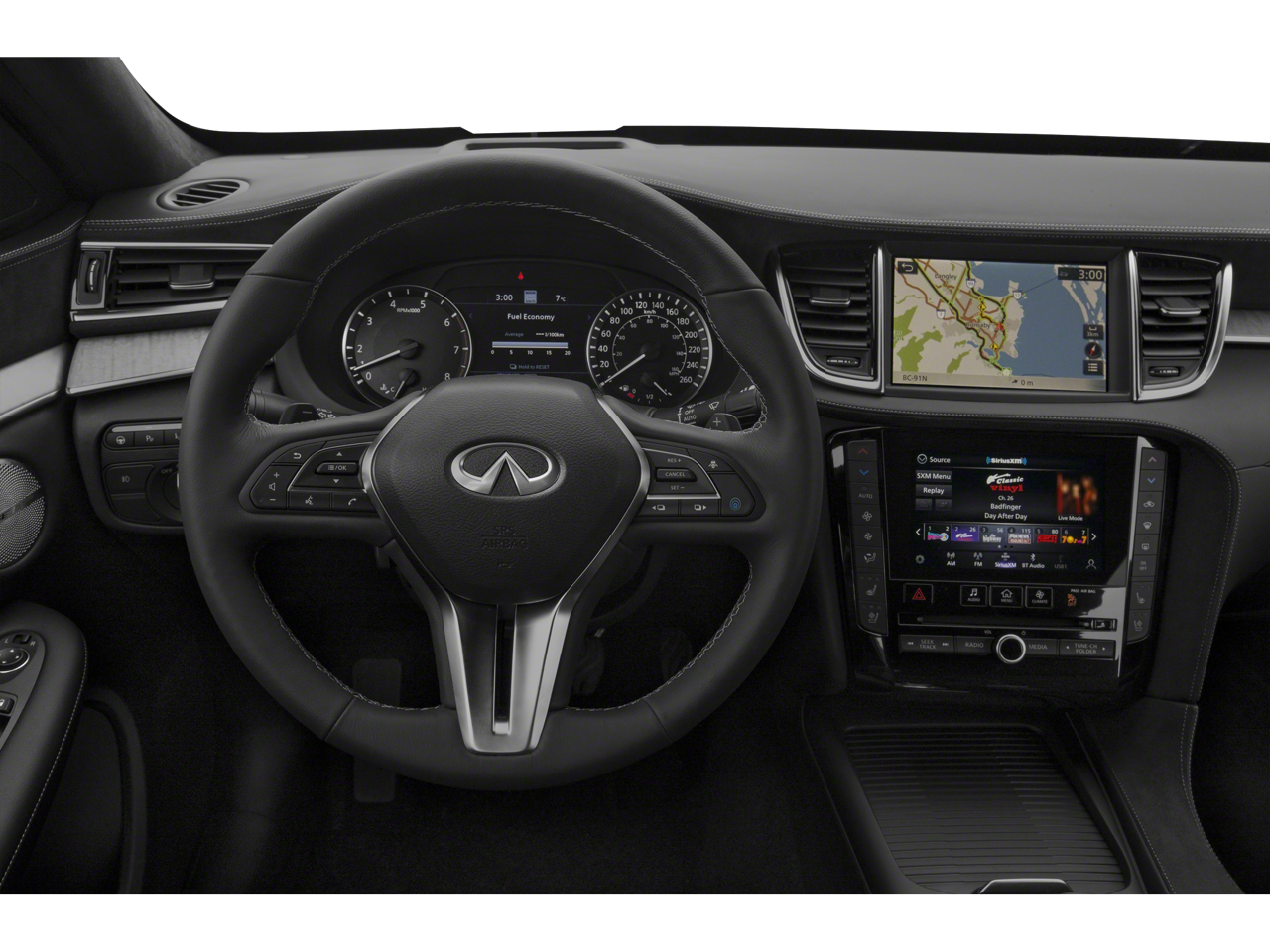 - Radio: Bose Performance Series Audio System -inc: 16 speakers, metallic speaker grilles on tweeter, 4 USB connection ports, Apple CarPlay and Android Auto, dual display system w/upper 8" and lower 7" HD touch screens, INFINITI voice recognition, HD Radio technology, SiriusXM radio w/advanced audio features w/3-month complimentary trial, streaming audio via Bluetooth®, Bluetooth® hands-free phone system, Siri eyes free, hands-free text messaging assistant, active noise cancellation and navigation package including 5-year premium traffic and MapCare complimentary trial, SiriusXM Traffic and Travel Link w/3-month complimentary trial, automatic collision notification and emergency call and Wi-Fi hotspot