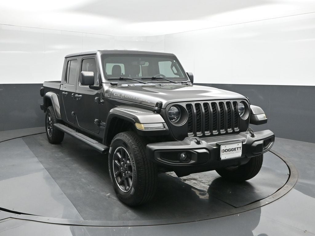 Doggett CDJR Of Beaumont is proud to present you with another True Market Priced Pre-Owned Vehicle. This 2021 Jeep Gladiator Sport is loaded with the following Factory Options: 8.4 Radio & Premium Audio Group (1-Year SiriusXM Guardian Trial, 115V Auxiliary Power Outlet, 220 Amp Alternator, 400W Inverter, 5-Year SiriusXM Traffic Service, 5-Year SiriusXM Travel Link Service, 8.4 Touchscreen Display, Air Conditioning w/Auto Temperature Control, Alpine Premium Audio System, Apple CarPlay, Auto-Dimming Rear-View Mirror, Console Bin Task Light, Emergency/Assistance Call, For Details, Visit DriveUconnect.com, For More Info, Call 800-643-2112, Google Android Auto, GPS Antenna Input, GPS Navigation, HD Radio, Integrated Center Stack Radio, Media Hub w/2 Charge Only USBs, Off-Road Info Pages, Radio: Uconnect 4C Nav w/8.4 Display, SiriusXM Radio Service, SiriusXM Satellite Radio, SiriusXM Traffic Plus, SiriusXM Travel Link, and USB Host Flip), Convenience Group, LED Headlamp & Fog Lamp Group (Daytime Running Lamps LED Accents, Front LED Fog Lamps, and LED Premium Reflector Headlamps), Quick Order Package 24Q 80th (DISC) (80th Edition, Anodized Gunmetal I/P Bezels, Automatic Headlamps, Berber Floor Mats w/80th Anniversary Tag, Body Color Fender Flares (2-Piece), Body Color/Accent Color Grille, Cloth Bucket Seats w/80th Anniversary Tag (DISC), Daytime Running Lamp System, Deep Tint Sunscreen Windows, Front 1-Touch Down Power Windows, Gray/Black Jeep Badges, Gray/Black Trail Rated Badge, Jeep 80th Anniversary Badges, Jeep 80th Anniversary Console Badge, Leather Wrapped Steering Wheel, Light Tungsten Interior Accents, Molded in Color Bumper w/Neutral Gray, Normal Duty Plus Suspension, Power Heated Mirrors, Power Tailgate Lock, Remote Keyless Entry, Security Alarm, Speed Sensitive Power Locks, Sun Visors w/Illuminated Vanity Mirrors, and Wheels: 18 x 7.5 Granite Crystal Aluminum (DISC)), Safety Group (Blind Spot & Cross Path Detection, LED Taillamps, and ParkSense Rear Park Assist System), Technology Group (7.0 Touch Screen Display, Cluster 7.0 TFT Color Display, Integrated Voice Command w/Bluetooth®, and Radio: Uconnect 4 w/7 Display), 110 mph Vehicle Max Speed Calibration, 3.73 Rear Axle Ratio, 4-Wheel Disc Brakes, 8 Speakers, ABS brakes, Air Conditioning, AM/FM radio, Anti-Lock 4-Wheel Disc Heavy Duty Brakes, Black 3-Piece Hard Top, Brake assist, Cloth Low-Back Bucket Seats, Compass, Delay-off headlights, Driver door bin, Driver vanity mirror, Dual front impact airbags, Dual front side impact airbags, Electronic Stability Control, Front anti-roll bar, Front Bucket Seats, Front Center Armrest w/Storage, Front fog lights, Front reading lights, Integrated roll-over protection, Low tire pressure warning, Normal Duty Suspension, Occupant sensing airbag, Outside temperature display, ParkView Rear Back-Up Camera, Passenger door bin, Passenger vanity mirror, Power steering, Radio data system, Radio: Uconnect 3 w/5 Display, Rear anti-roll bar, Rear reading lights, Speed control, Split folding rear seat, Steering wheel mounted audio controls, Tachometer, Telescoping steering wheel, Tilt steering wheel, Traction control, Trip computer, Variably intermittent wipers, and Wheels: 17 x 7.5 Black Steel Styled!!