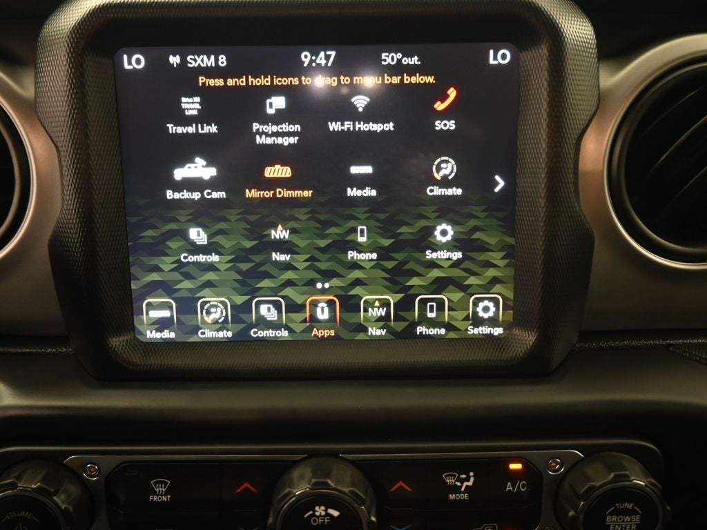 - 8.4" Radio & Premium Audio Group -inc: Google Android Auto, SiriusXM Traffic Plus, USB Host Flip, Integrated Center Stack Radio, Rear View Auto Dim Mirror, For Details, Visit DriveUconnect.com, Console Bin Task Light, 5-Year SiriusXM Travel Link Service, GPS Navigation, 5-Year SiriusXM Traffic Service, Media Hub w/2 Charge Only USBs, 8.4" Touchscreen Display, Apple CarPlay, Off-Road Info Pages, SiriusXM Radio Service, For More Info, Call 800-643-2112, GPS Antenna Input, 400W Inverter, HD Radio, Air Conditioning w/Auto Temp Control, 1-Year SiriusXM Guardian Trial, SiriusXM Travel Link, Emergency/Assistance Call, 115V Auxiliary Power Outlet