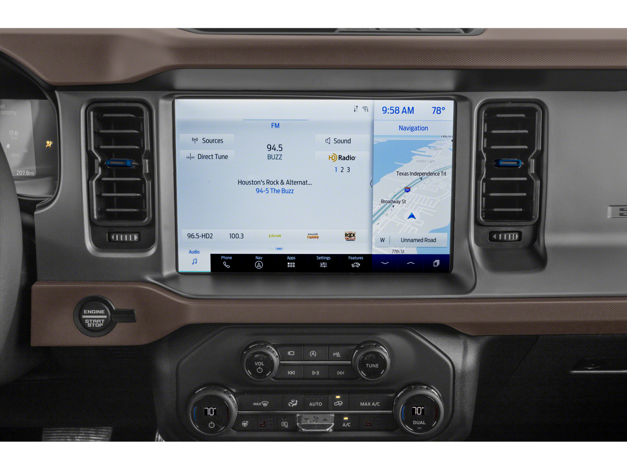 Recent Arrival! CARFAX One-Owner. Certified. Doggett Ford North Houston is proud to present you with another True Market Priced Vehicle. This 2022 Ford Bronco Outer Banks is loaded with the following Factory Options: Equipment Group 314A Lux Package (12 LCD Capacitive Touchscreen w/Swipe Capability, 2 Smart Charging USB Ports In Dashboard, 360-Degree Camera, Adaptive Cruise Control, Additional Sound Deadening, Connected Built-In Navigation, Evasive Steering Assist, Front Parking Sensors, Heated Steering Wheel, Information on Demand Panel, Radio: B&O Sound System by Bang & Olufsen, Sideview Mirrors, Universal Garage Door Opener, and Wireless Charging Pad), Sasquatch Package (4.7 Final Drive Ratio, High Clearance Fender Flares, High Clearance Suspension, Position-Sensitive Bilstein Shock Absorbers, and Wheels: 17 Black High Gloss-Painted Aluminum), 18 Bright Machined Aluminum Wheels, 4-Wheel Disc Brakes, 4.27 Axle Ratio, 6 Speakers, ABS brakes, Air Conditioning, Alloy wheels, AM/FM radio: SiriusXM with 360L, AM/FM Stereo, Auto High-beam Headlights, Auto-dimming Rear-View mirror, Automatic temperature control, Auxiliary Switches, Brake assist, Carbonized Gray Molded-In-Color Hard Top, Compass, Connected Navigation, Delay-off headlights, Driver door bin, Driver vanity mirror, Dual front impact airbags, Dual front side impact airbags, Electronic Stability Control, Emergency communication system: 911 Assist, Engine Block Heater, Exterior Parking Camera Rear, Front anti-roll bar, Front Bucket Seats, Front Center Armrest, Front dual zone A/C, Front fog lights, Front License Plate Bracket, Front reading lights, Front Row Top Panels Storage Bag, Front wheel independent suspension, Fully automatic headlights, Hard Top Sound Deadening Headliner, Heated Cloth Bucket Seats, Heated door mirrors, Heated front seats, Illuminated entry, Integrated roll-over protection, Keyless Entry Keypad, Leather Shift Knob, Low tire pressure warning, Navigation system: Connected Navigation, Occupant sensing airbag, Outside temperature display, Overhead airbag, Overhead console, Panic alarm, Passenger door bin, Passenger vanity mirror, Power door mirrors, Power steering, Power windows, Radio data system, Rear-Window Defroster & Washer, Remote keyless entry, Security system, SiriusXM Radio w/360L, Speed control, Split folding rear seat, Steering wheel mounted audio controls, SYNC 4, Tachometer, Telescoping steering wheel, Tilt steering wheel, Traction control, Trip computer, Variably intermittent wipers, and Voltmeter!!