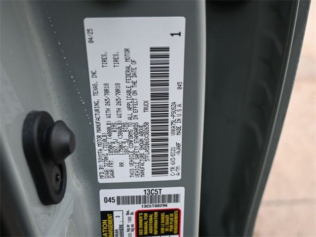 Doggett Toyota of Beaumont is proud to present you with another True Market Priced Pre-Owned Vehicle. This 2025 Toyota Tundra SR5 Toyota Certified is loaded with the following Factory Options: SR5 Premium Package (8-Way Power-Adjustable Heated Front Seats, Automatic Power Tailgate with Easy Closing, and SofTex Seat Trim), 9 Speakers, Active Cruise Control, Air Conditioning, Alloy wheels, AM/FM radio: SiriusXM, Apple CarPlay/Android Auto, Auto High-beam Headlights, Automatic temperature control, Brake assist, Delay-off headlights, Driver door bin, Driver vanity mirror, Electronic Stability Control, Exterior Parking Camera Rear, Front fog lights, Fully automatic headlights, Heated door mirrors, Power door mirrors, Power driver seat, Power steering, Power windows, Radio data system, Radio: Audio Multimedia System, Rear step bumper, Rear window defroster, Remote keyless entry, Safety Connect, and Steering wheel mounted audio controls SR5 Premium Package (8-Way Power-Adjustable Heated Front Seats, Automatic Power Tailgate with Easy Closing, and SofTex Seat Trim), 9 Speakers, Active Cruise Control, Air Conditioning, Alloy wheels, AM/FM radio: SiriusXM, Apple CarPlay/Android Auto, Auto High-beam Headlights, Automatic temperature control, Brake assist, Delay-off headlights, Driver door bin, Driver vanity mirror, Electronic Stability Control, Exterior Parking Camera Rear, Front fog lights, Fully automatic headlights, Heated door mirrors, Power door mirrors, Power driver seat, Power steering, Power windows, Radio data system, Radio: Audio Multimedia System, Rear step bumper, Rear window defroster, Remote keyless entry, Safety Connect, Steering wheel mounted audio controls, 18 Alloy Wheels, 3.31 Axle Ratio, 4-Wheel Disc Brakes, ABS brakes, Bumpers: body-color, Dual front impact airbags, Dual front side impact airbags, Emergency communication system: Safety Connect (10-year trial), Fabric Seat Trim (FB), Front anti-roll bar, Front Bucket Seats, Front Center Armrest, Front reading lights, Front wheel independent suspension, Illuminated entry, Knee airbag, Leather Steering Wheel, Low tire pressure warning, Occupant sensing airbag, Outside temperature display, Overhead airbag, Overhead console, Panic alarm, Passenger door bin, Passenger vanity mirror, Rear reading lights, Security system, Speed control, Speed-sensing steering, Split folding rear seat, Tachometer, Telescoping steering wheel, Tilt steering wheel, Traction control, Trip computer, Variably intermittent wipers, and Voltmeter!!