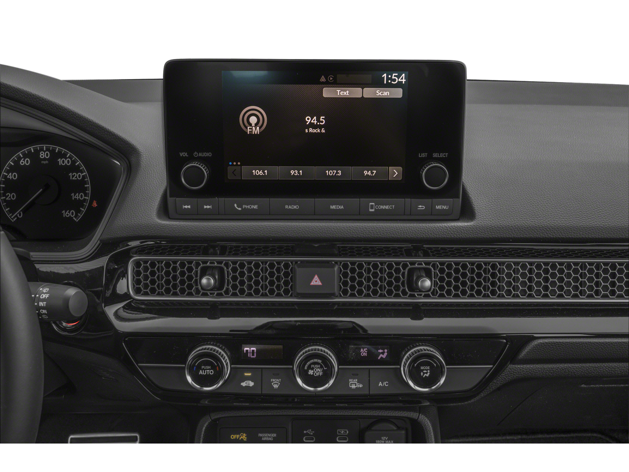 - Radio: 180-Watt Audio System -inc: 8 speakers, 7" color touchscreen, Bluetooth® HandsFreeLink and streaming audio, HondaLink, Speed-Sensitive Volume Compensation (SVC), Radio Data System (RDS), Apple CarPlay and Android Auto compatibilities and USB-C 3.0A smartphone/audio interface in front seats